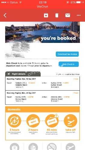 150刀可议价转一张9月18日出发,9月25日返程的阿德往返悉尼机票,时间非常好,11点出发,下午3点返回,联系电话:0481797667,非诚勿扰谢谢 微信:Zch_212