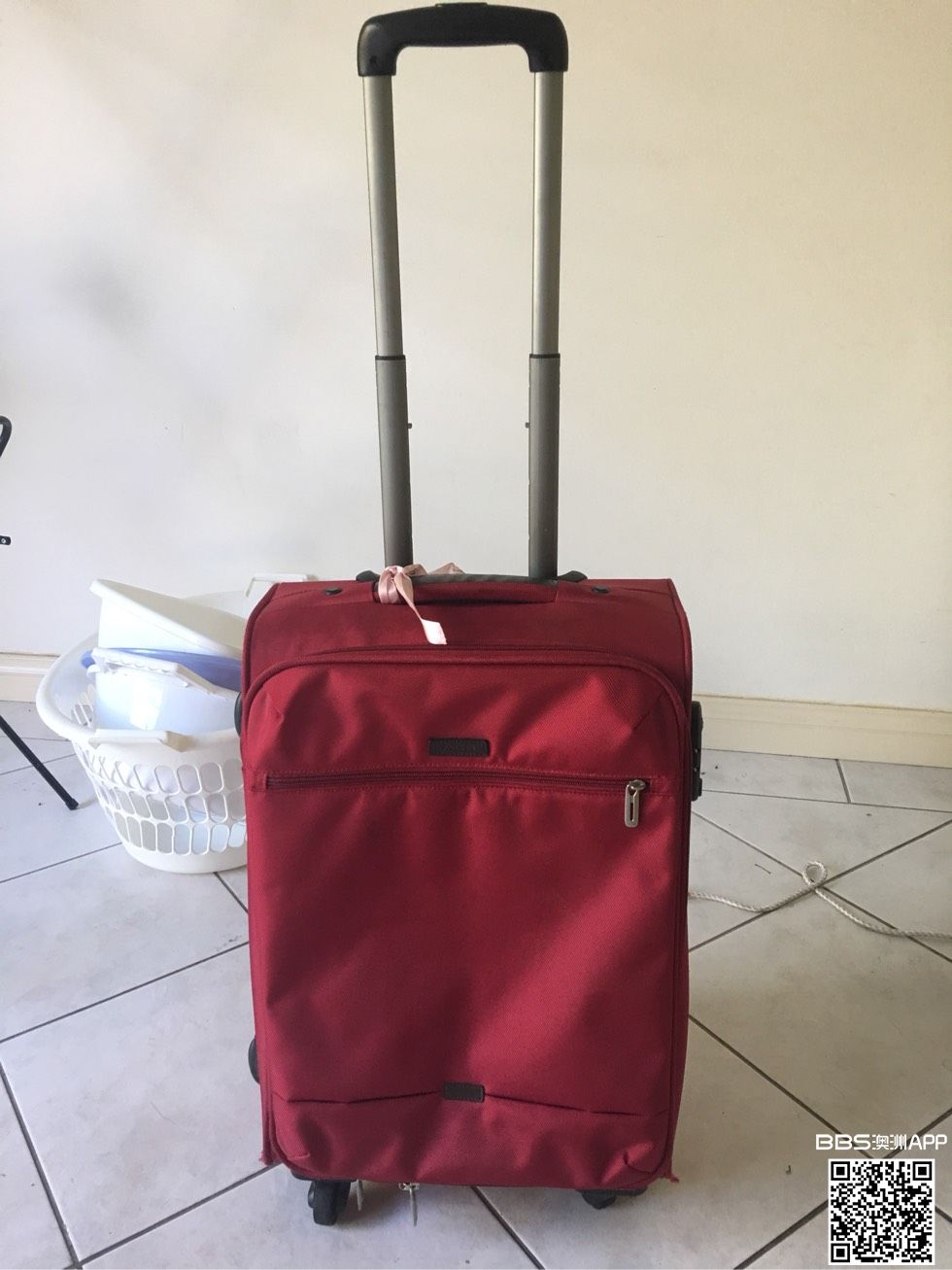 出一个小行李箱,长宽高为49,36,19cm。除了有一点磨损,其他都完好。$15。联系电话0449986760