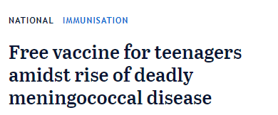 好消息! 全澳的青少年都可以免费接种脑膜炎疫苗啦! “我希望加强澳大利亚世界级的国家疫苗接种计划,并敦促所有澳大利亚父母让他们的青少年子女接种疫苗,”Hunt说。 Westmead医学研究所传染病主任Jo ...
