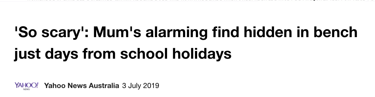 现在正是学校假期,不少孩子都会外出游玩, 日前,一位珀斯母亲在CBD广场座上发现可怕一幕! 她在网上发帖提醒大家提高警惕,避免儿童发生意外! 希望在公共场合,有工作人员可以及时处理这些危险物品, ...
