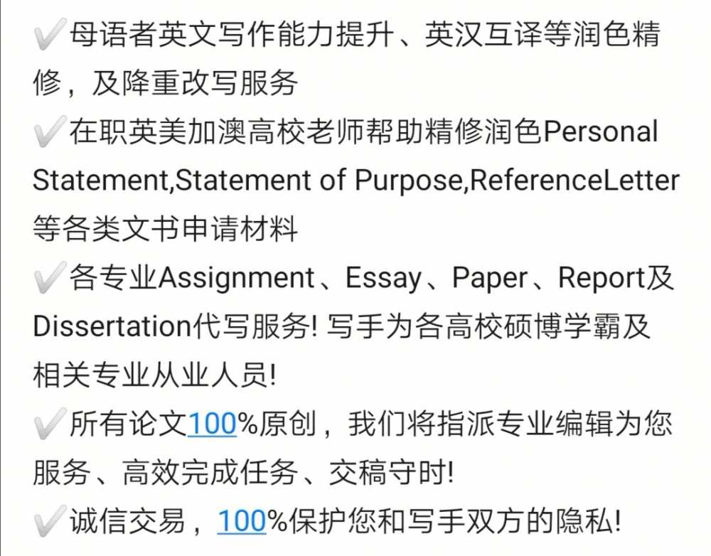 母语者英文写作能力提升、英汉互译等润色精修,及降重改写服务 在职英美加澳高校老师帮助精修润色Personal Statement,Statement of Purpose,ReferenceLetter等各类文书申请材料 各专业Assignment、Essay、Pape ...