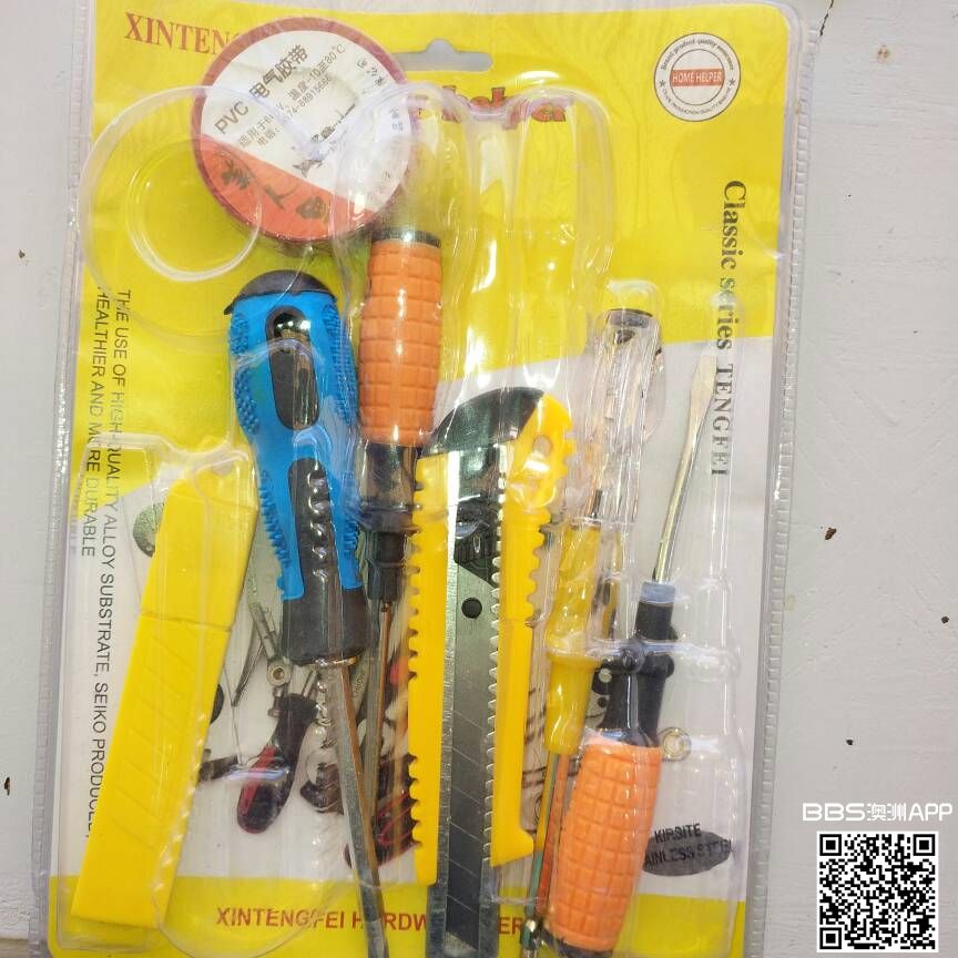闲置工具一套:2把十字螺丝刀,1把一字螺丝刀,1把电笔,一把电工刀(带刀片2把),一卷电气胶布,居家必备,需要者电话联系。0449778502或私信