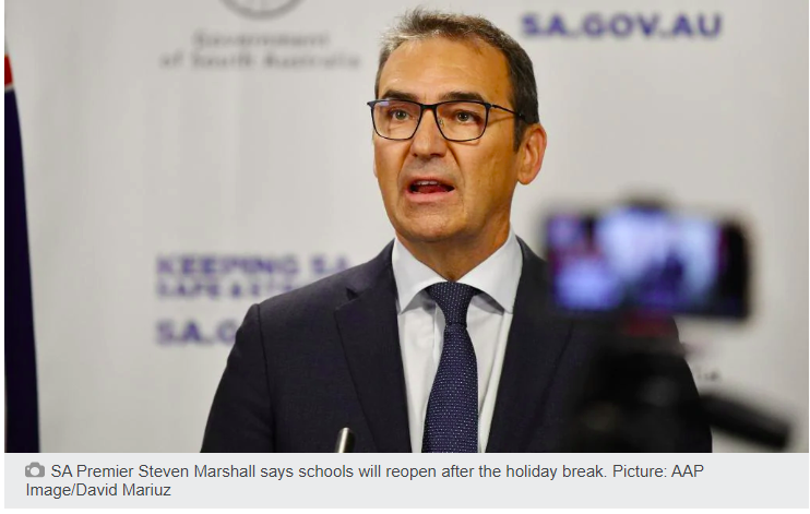 南澳州长Steven Marshall表示,学校将在第二学期(Term 2)开放,他认为在疫情期间,教室为学生提供了一个“更安全的环境”(“safer environment”)。