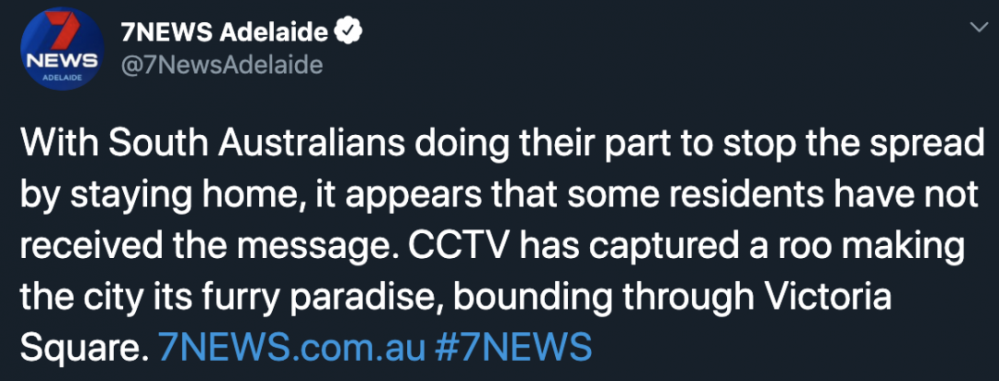 周日早晨,一只袋鼠横穿阿德莱德CBD! 它在空荡荡的街道狂奔,竟然还知道过马路! 不得不说, 澳大利亚的小动物们,也有着澳式可爱呐!