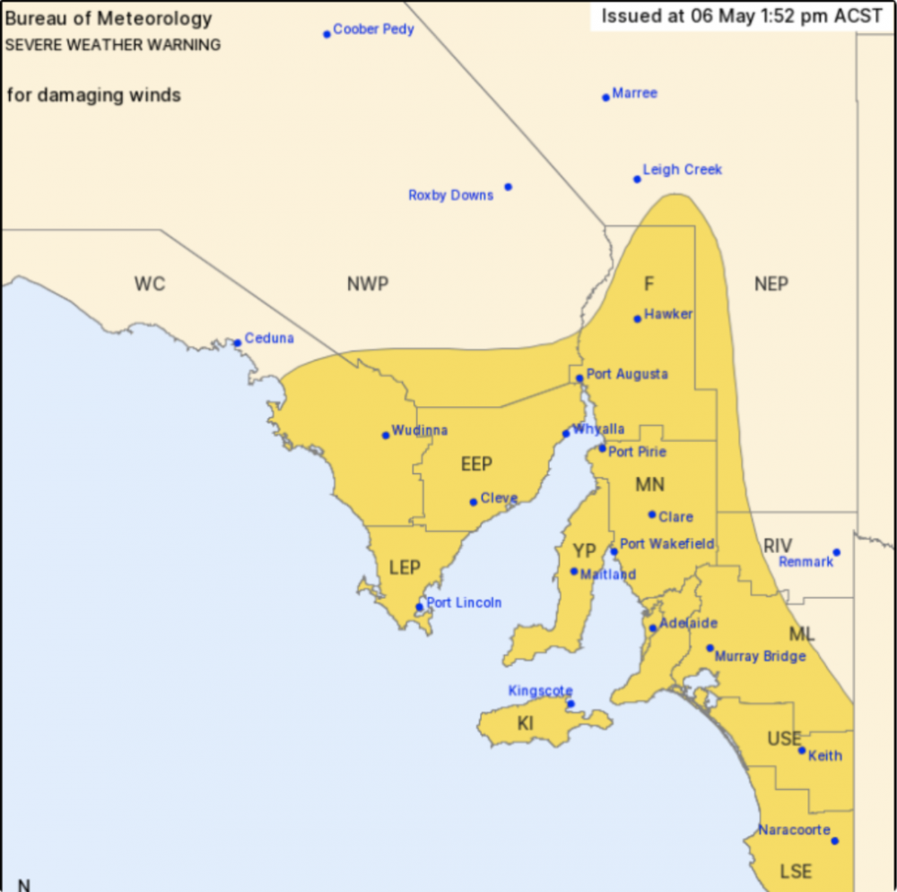 预计阿德莱德周四凌晨将有大风袭来,风速高达每小时100公里。 气象局已经发布了南澳南部和东南部的恶劣天气预警,包括阿德莱德CBD、以及西南部的城镇,包括Cleve和Port Lincoln。 Eyre半岛和西南地区的风力将从 ...