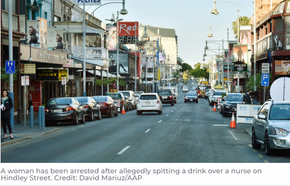 在阿德莱德,一名女子因向护士吐口水而被捕。 周二早上,受害者护士穿着蓝色的医院工作服,沿着Hindley Street散步,当时她被一名女子吐了口水。 这名护士没有受伤。 根据去年颁布的法律,任何在南澳袭击紧 ...