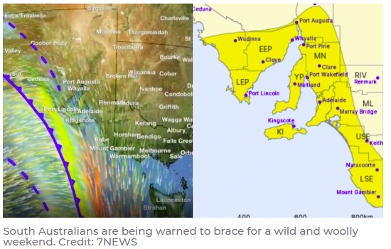 气象局已经发布了天气警告,预计周六整个中央商务区的阵风将达到90公里/小时。 强风或将影响以下地区: Adelaide MetropolitanMount Lofty RangesLower Eyre PeninsulaEastern Eyre PeninsulaYorke Peninsu ...