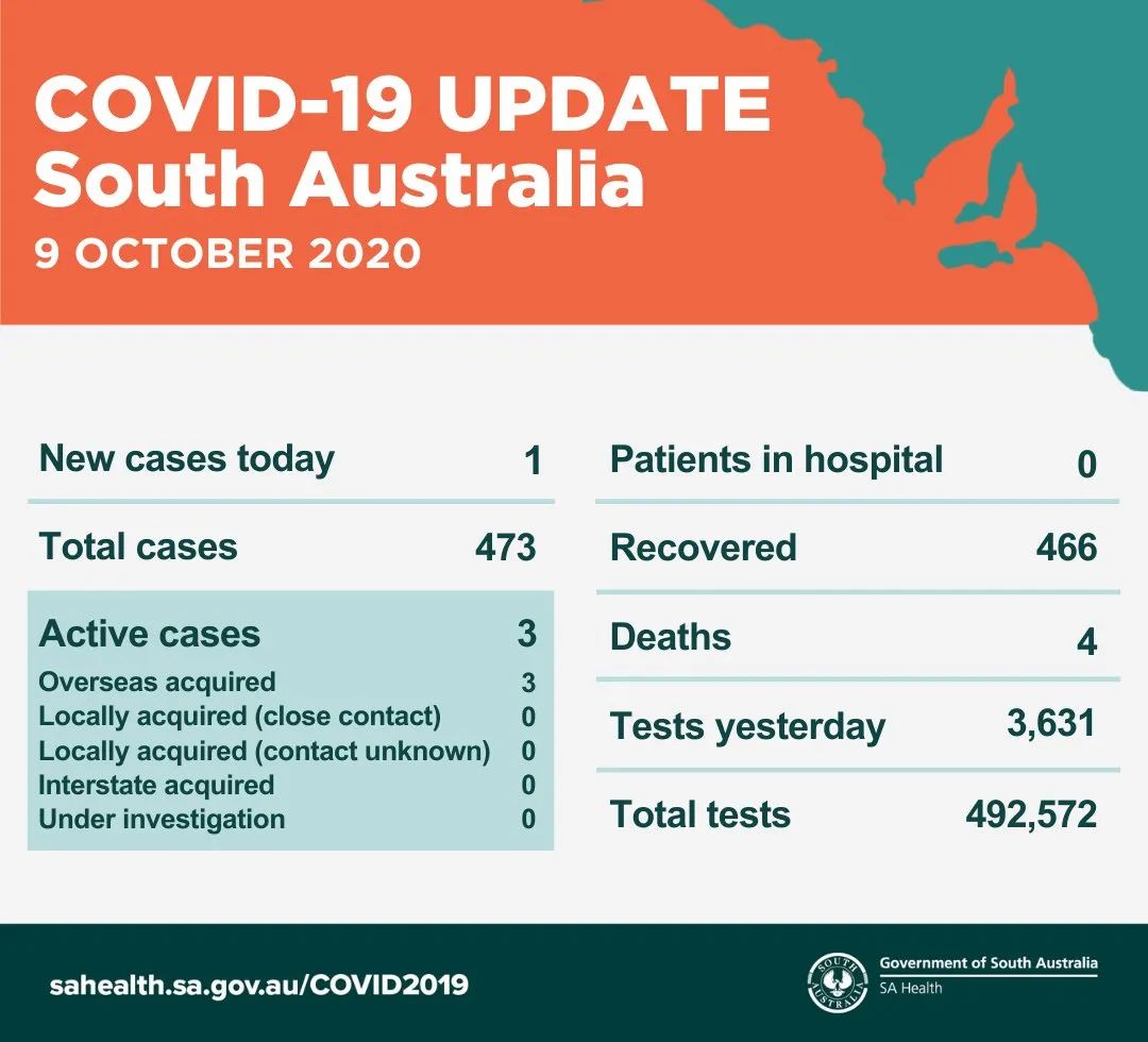 根据南澳卫生部门的通报,过去24小时里,南澳出现一名新增病例。系一名从海外返回的20多岁的男性。在检测结果确定前看,该男子一直处于酒店隔离中。卫生部门相信,该病例没有传染性,不会对公众健康产生威胁。 今天 ...