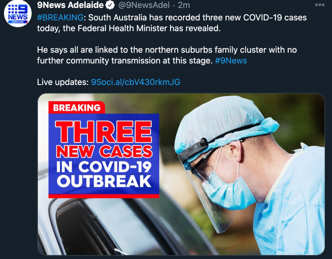 在过去的24小时内,南澳新增了3例新的COVID-19病例。 今天(11月17日)早上,南澳州长Steven Marshall表示,夜间南澳新增一例新病例,是Parfield群集的密切接触者。 联邦卫生部长Greg Hunt在宣布另外两例新增确 ...