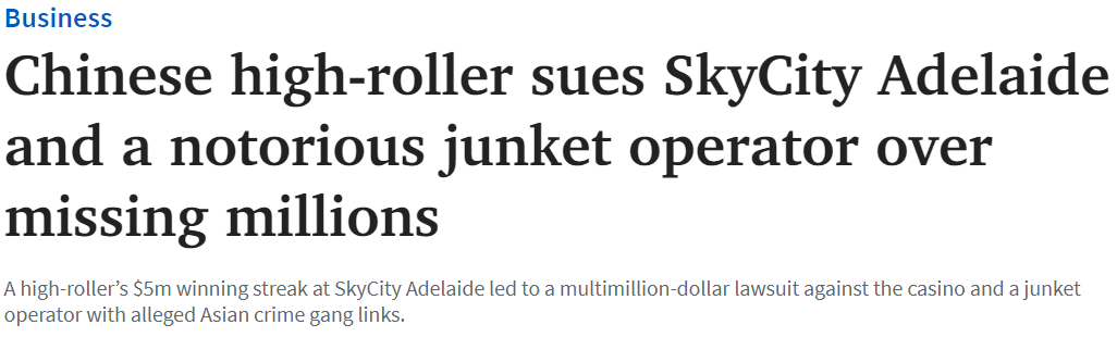 据澳媒报道,近日中国一年轻富人状告阿德SkyCity和一家臭名昭著的赌博中介运营商,原因是丢失了数百万澳元。 据称,其中约有204.9万澳元被退了回来,此后SkyCity已将该款打入最高法院起诉人基金。 据称,Mr. X ...