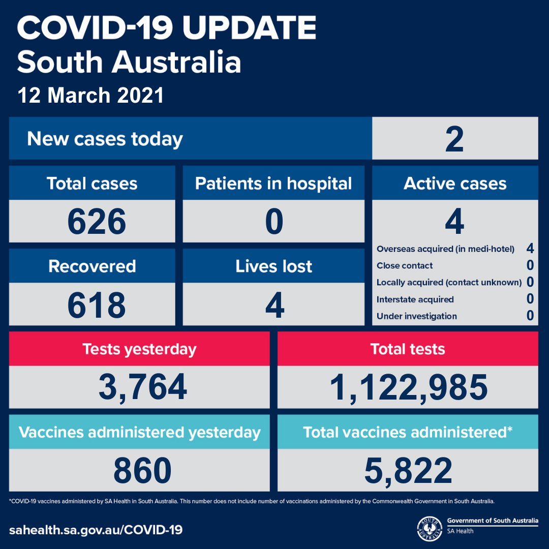据南澳卫生局的消息,今天南澳新增了2名确诊病例,都是在隔离酒店中被确诊的。 新闻来源:SA Health