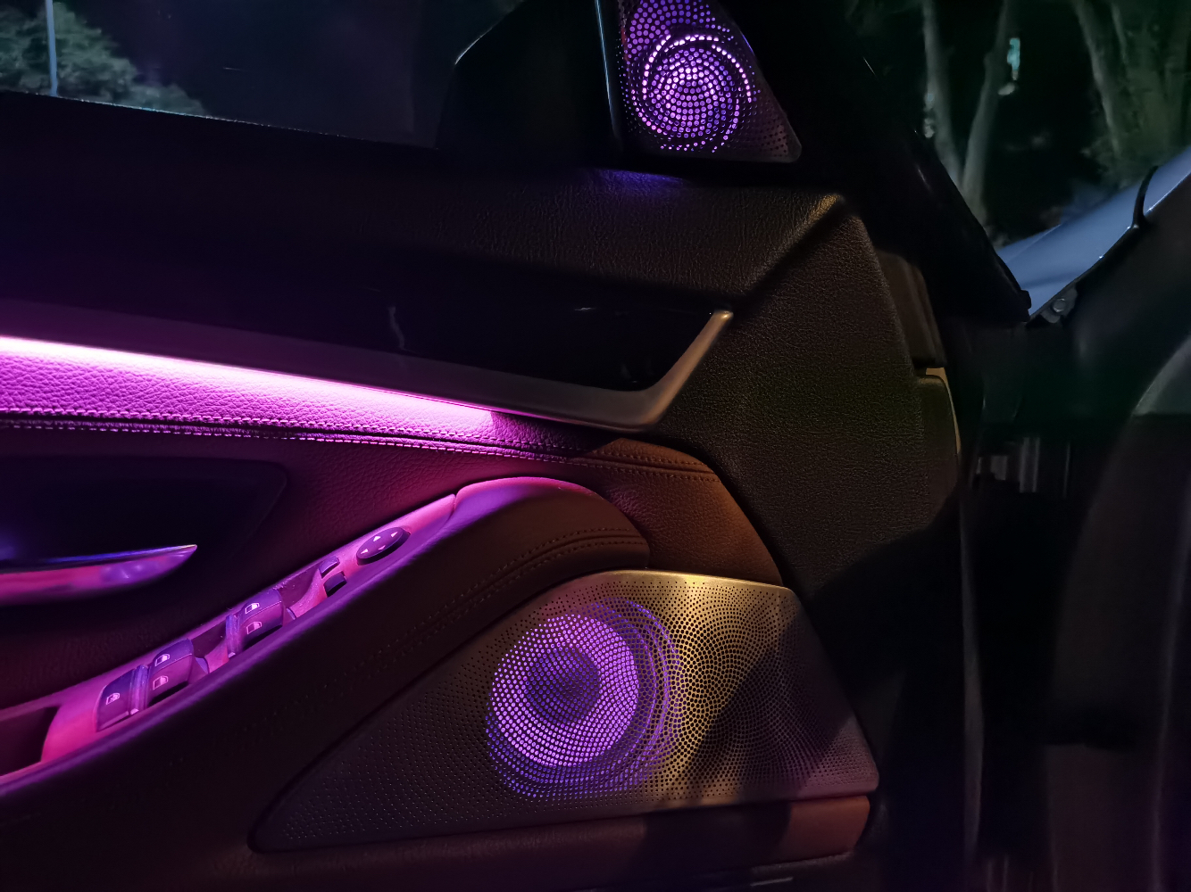 宝马5系加装八色氛围灯,宝华发光喇叭罩