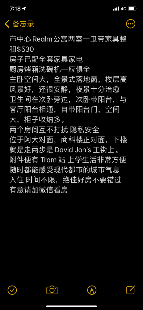 市中心realm公寓,两室一厅一卫,出租主卧,看房短信0405590320,价格面谈