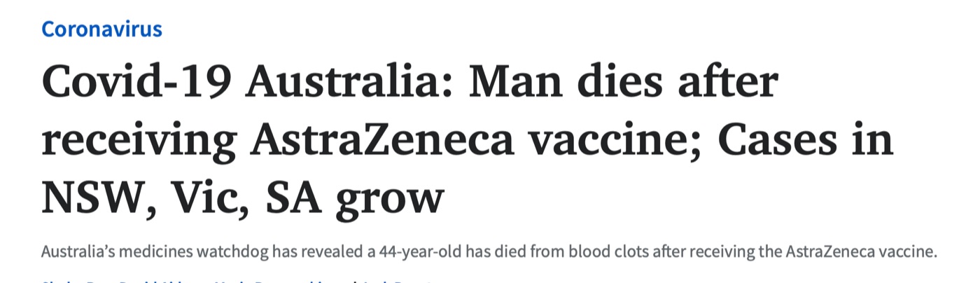 塔斯马尼亚州卫生部长杰里米-洛克利夫(Jeremy Rockliff)说,该州一名44岁的男子被列入治疗用品管理局制作的最新不良事件统计中。 卫生部部长Kath Morgan-Wicks说,这名男子死于与疫苗有关的一种罕见的并 ...