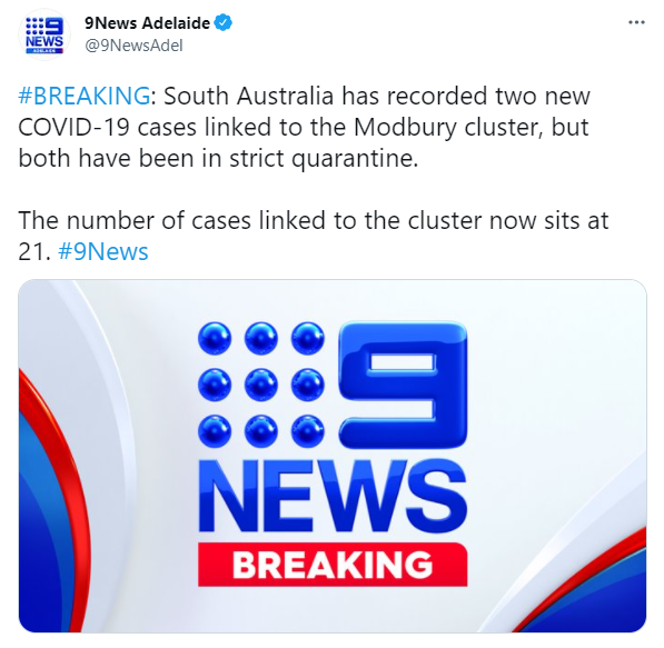 在过去的24小时里,南澳新增2例社区感染! 这两例确诊与Modbury集群有关,他们都已被隔离。 图文来源:The Advertiser, SA Health 原文链接