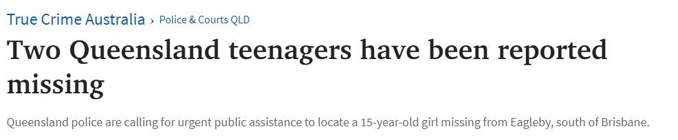 昆州东南部有两名青少年失踪,警方正在呼吁公众援助。 图文来源:couriermail 原文链接: