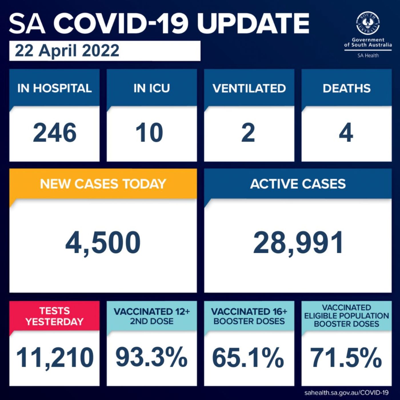 在过去的24小时里,南澳新增4500例确诊病例,4人死亡! 目前南澳有28,991个活跃病例。 南澳卫生部证实,有4人死亡,分别是三名70多岁的男性和一名80多岁的男性。 目前南澳有246名COVID-19患者住院, ...