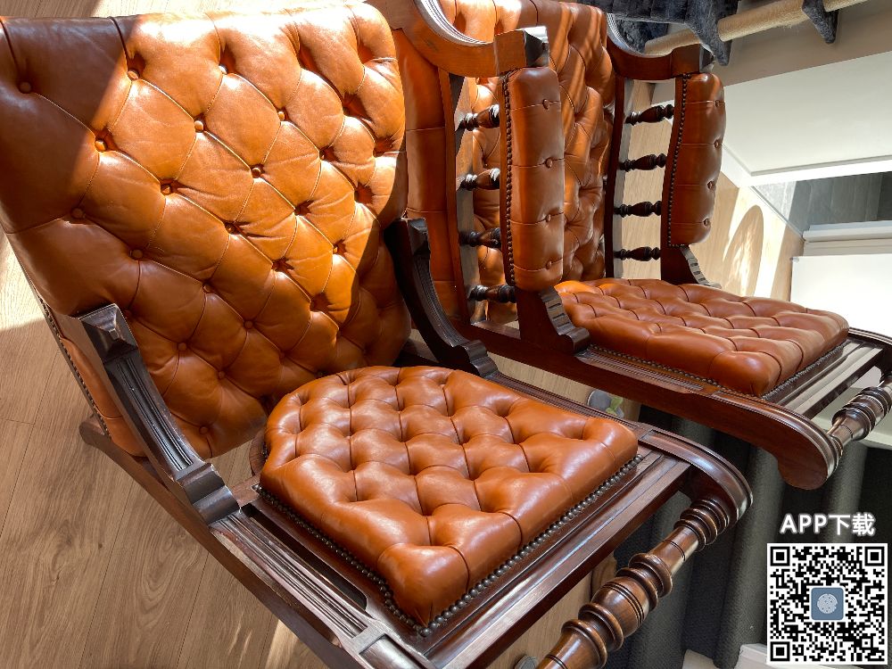 实木真皮 古董椅一套。 200。