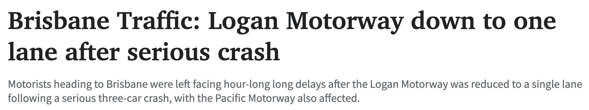 由于Logan Motorway发生一起三车相撞事故,暂时调整为单车道,前往布里斯班的司机面临长达1小时的交通延误。 昆州救护车服务局(QAS)的发言人表示:“一人胸口和颈部疼痛,另一人受轻伤。” 两人已被送往医 ...