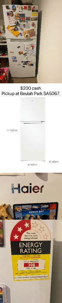 海尔冰箱 一手自用 成色佳 闲置出 平层无楼梯 $200现金 仅限自提 Beulah Park, SA5067. 0452191106 仅信息