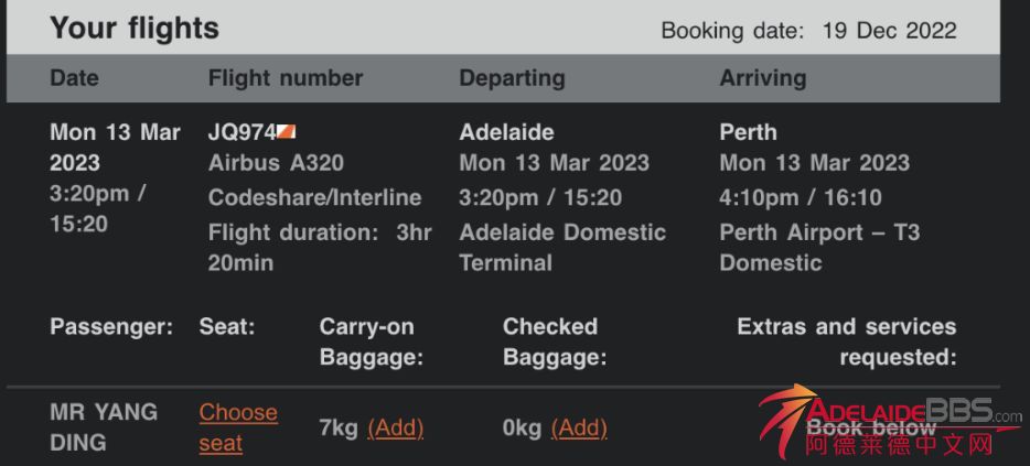 行程改变提前走人,之前预定的机票没法退,现在直接150刀直出了 时间: 3月13号 行程:阿德莱德to 珀斯 价格:150刀 需要的请联系flora182901