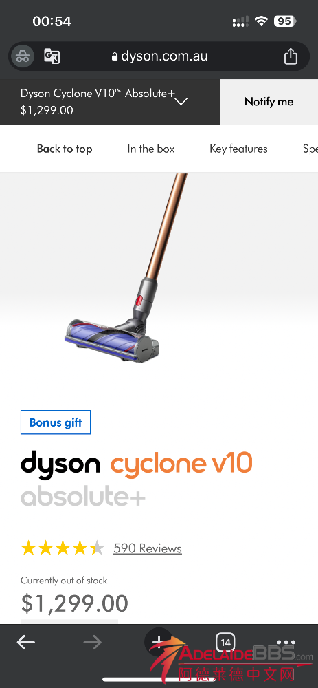 戴森吸尘器 Dyson Vacuum machine (V10 absolute +)9成新,各种刷头全部送,毕业回国转让,原价$1299,现白菜价$399,仅限阿德City面交, 有意者私聊