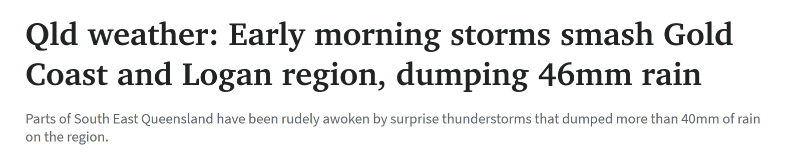 清晨,黄金海岸和Logan地区遭遇暴风雨,雨量达 46 毫米 7 点之前的几个小时里,Beaudesert 降雨量达 30 毫米,Coolangatta 降雨量达 28.4 毫米,Cape Moreton 降雨量达 19 毫米。 昆州在经历了 110 多年来 ...