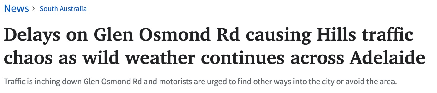 阿德暴雨:多处车祸造成交通混乱! South Eastern Freeway从Mount Osmond出口的下行道开始出现交通拥堵,一直拥堵到与Portrush Rd交叉口。 进入市区的Hills通勤者可以预计Glen Osmond Rd将继续受到瞬时洪水 ...