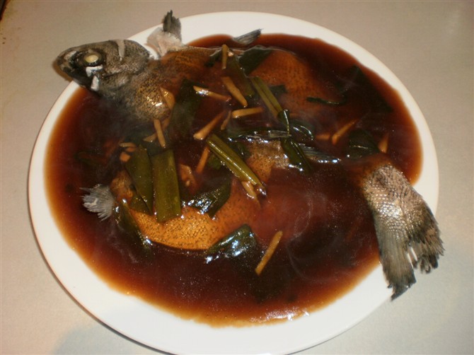 1、将葱洗净切段分成2份。姜半份拍裂,半份切丝。 2、将草鱼剖净,由鱼肚剖为两片(注意不可切断),放进锅中,注满清水,加葱1份、拍裂的姜、酒,煮滚后,用小火焖10分钟,捞起,盛入碟中,将姜丝遍滤鱼身。 ...