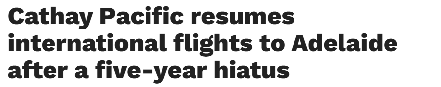 阿德莱德机场迎来国泰航空的回归,这是五年多来该航司首次复航,重新建立起南澳与香港乃至全球旅游和贸易机遇的桥梁。 国泰的返航标志着疫情前所有通往阿德的国际航线已全面恢复,这是该州旅游业与航空业发展的里程 ...