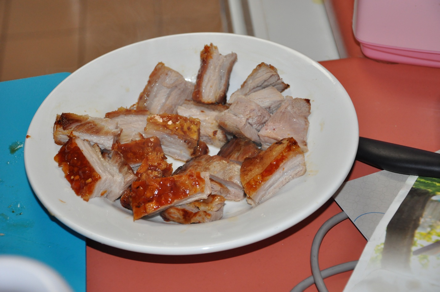 貌似没什么技术含量 记得用盐腌一下肉,大概1-2个小时 然后烤箱,5-10分钟去看一次,转方向 大概1小时就成了 酱料,烤鸭酱,冰梅酱都可以。非常好吃