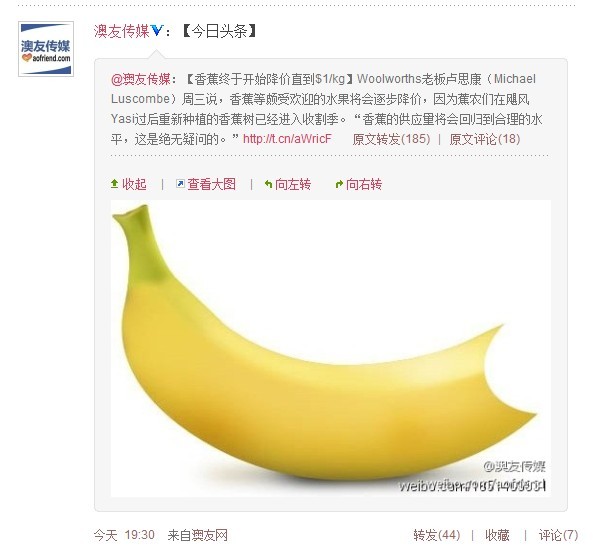 【香蕉终于开始降价直到$1/kg】