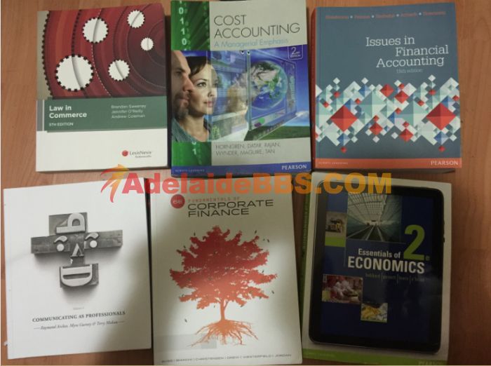 阿德莱德大学 二手教材出售 Communicating as Professionals 第三版 50刀 Fundamentals of Corporate Finance 第6版 80刀 Essentials of Economics 第二版 80刀 Issues in Financial Accounting 第15版 80 ...