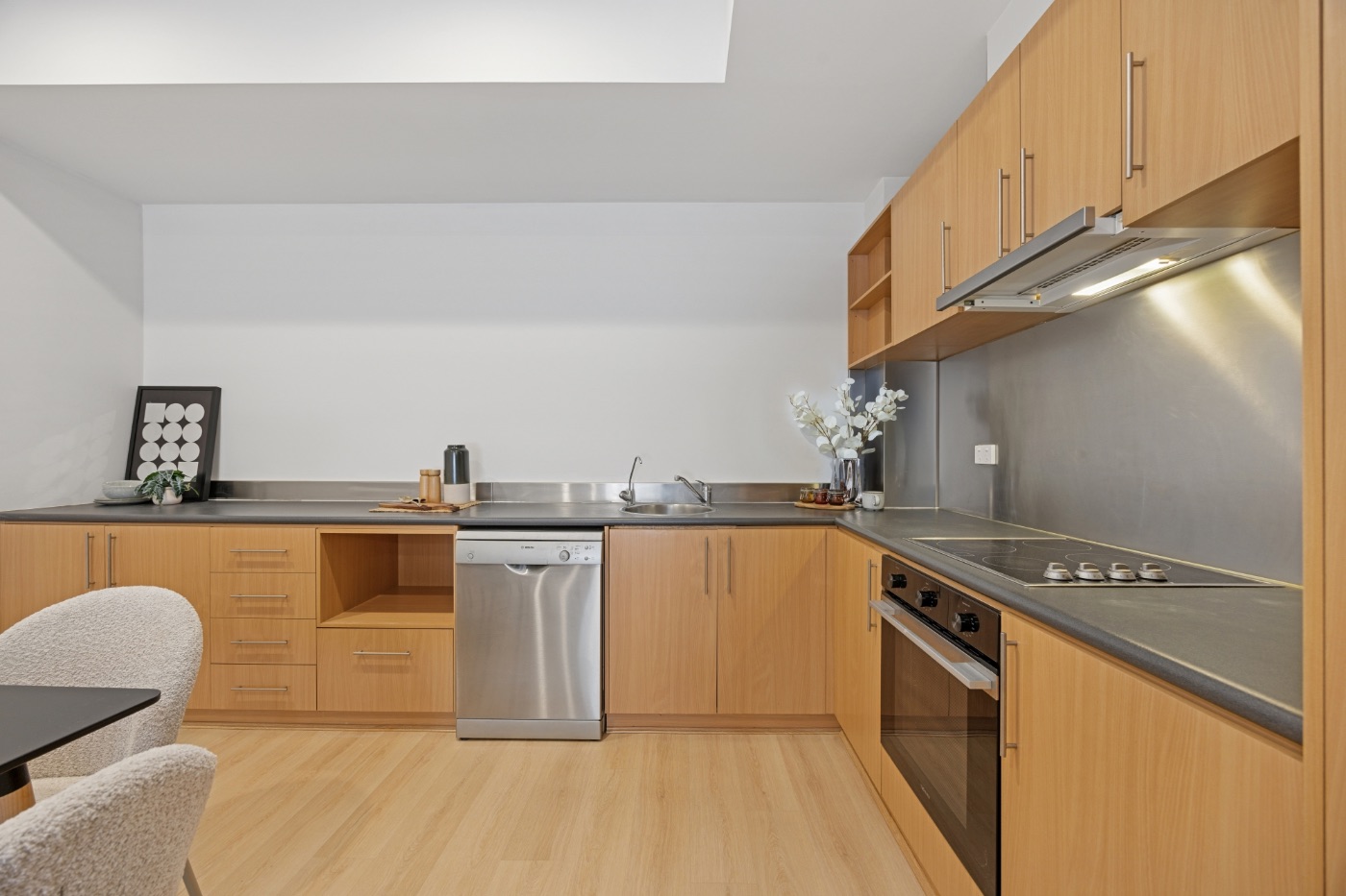 • 现代厨房含不锈钢电器、洗碗机