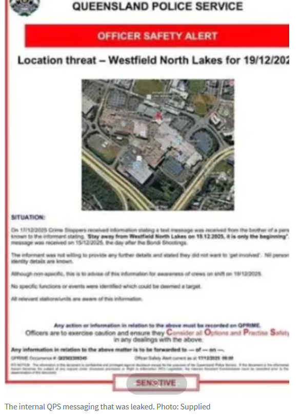 昆州警方的这份内部警报在社交媒体上被广泛传播,促使警方发布紧急声明,表示已随即加强Westfield North Lakes的巡逻警力,但强调目前并无直接威胁。