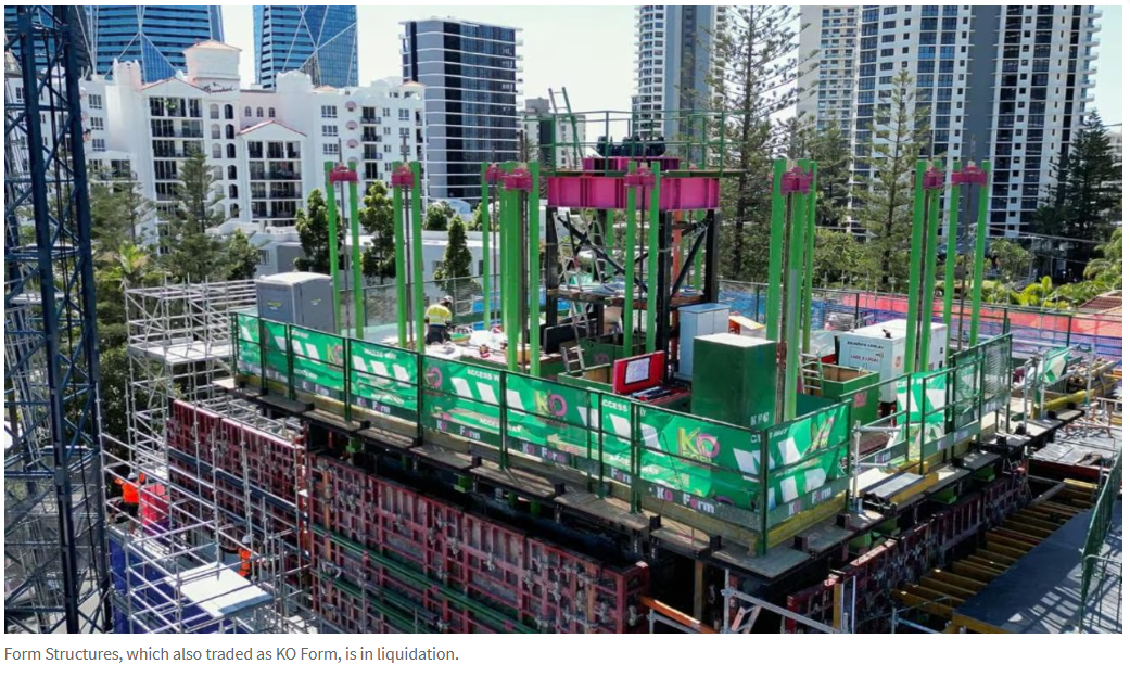 法庭记录显示,Form Structures于周四被债权人Acrow Formwork and Scaffolding在布里斯班最高法院清盘。