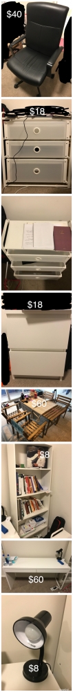黑色皮衣有两个 一个$40,两个$70 户外餐桌$60含四个座椅 台灯$8含灯泡 其他的如图所示价格 所有物品都没有损坏 all in very good condition 需自取 有需要的朋友请联系:0424606127