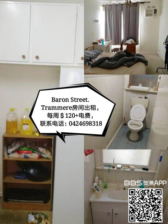 Baron Street. Trammere房间出租,每周$120+电费,联系电话:0424698318