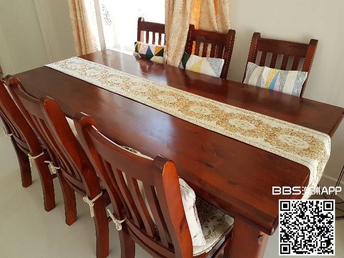 实木桌 两米长度,搭配六把椅子500刀 搭配八把椅子600刀,九成新 联系电话: 0469611003 微信号: feitianxiaomu 欢迎咨询