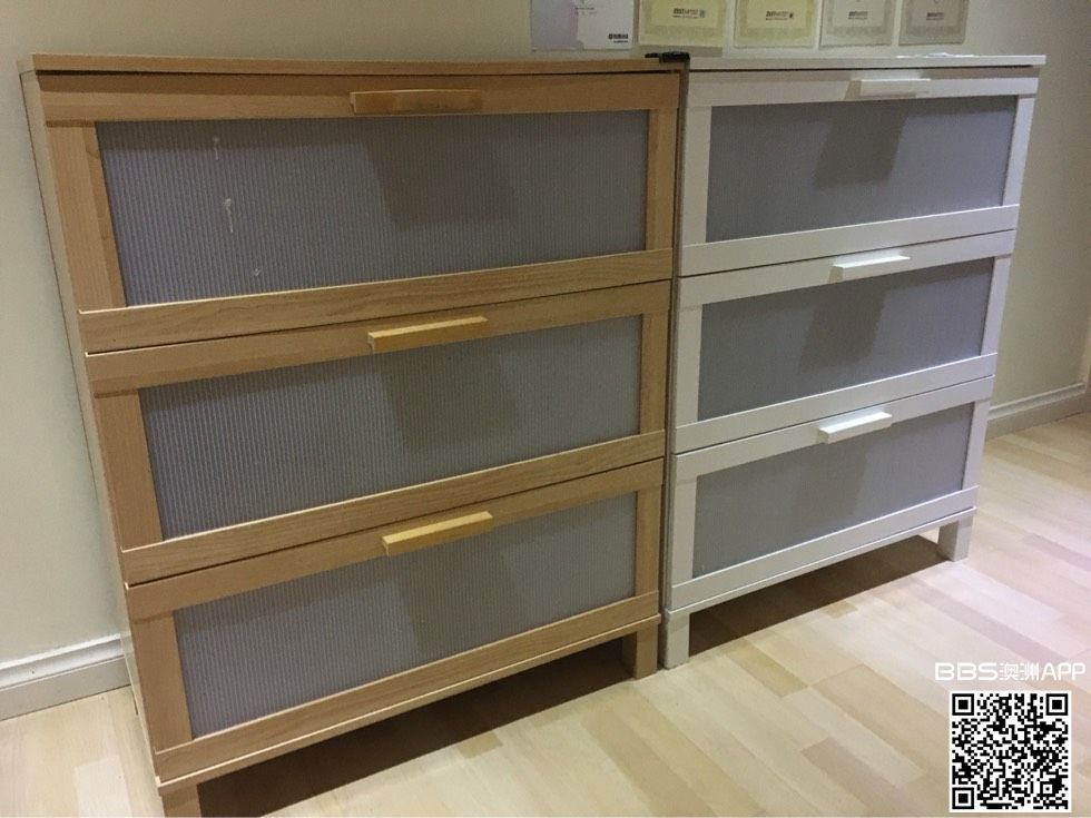 一米高,80厘米长。两个柜子的抽屉抽出不顺滑,一个白橡色,一个白色。卖$10一个。电话0458315035。家住south road和cross road交界。
