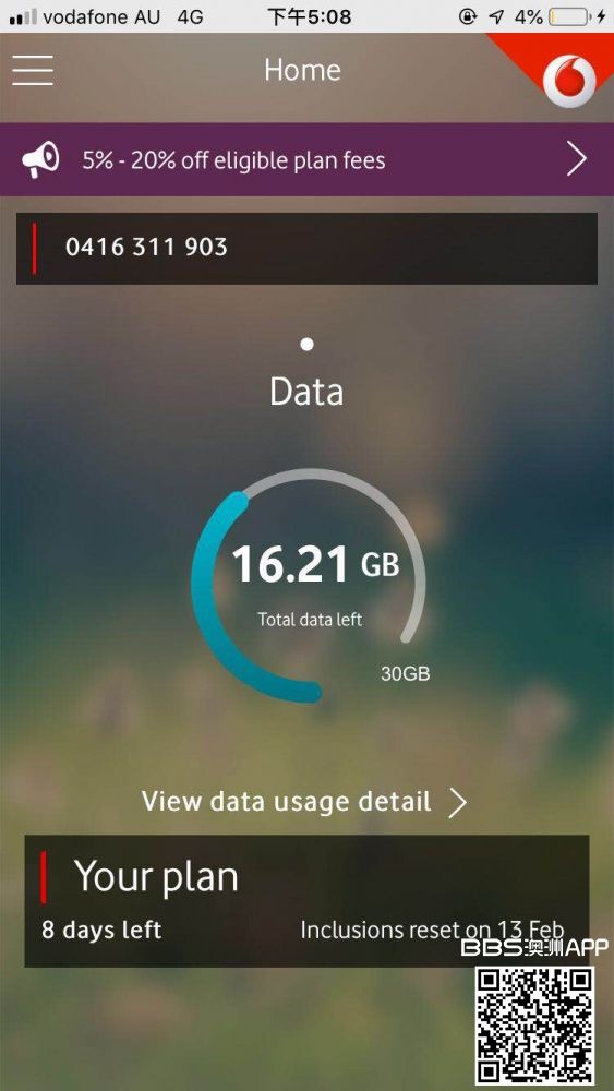 本人于本月回国,现在的套餐需要转让,11月份中旬到期,35刀一个月,含30个G,非常适合喜欢在公交车上看视频和在家用流量玩游戏的童鞋,而且有这个套餐几乎不用办理NBN了,网速很快。而且有补贴,感兴趣的请私m微信: ...