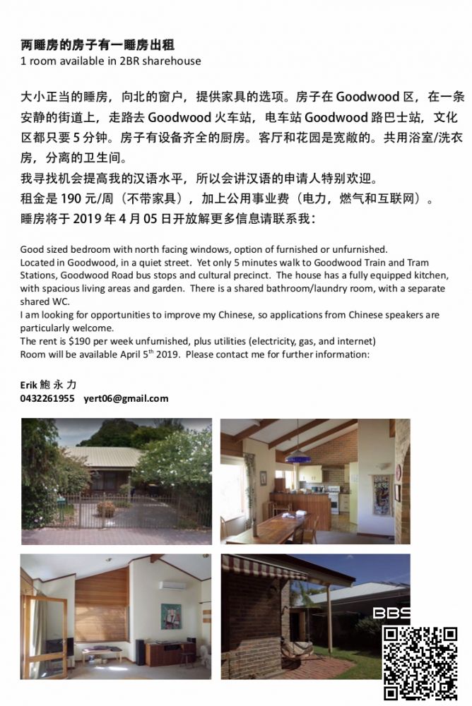 GoodWood 好房~~~!!!走过路过不要错过!!! 房子总共两个卧室,现在出租其中一间。House 总共两个卧室,现有其中一个卧室出租。 住进来你会和一位local 室友,share其他公共空间。房子的位置 ...