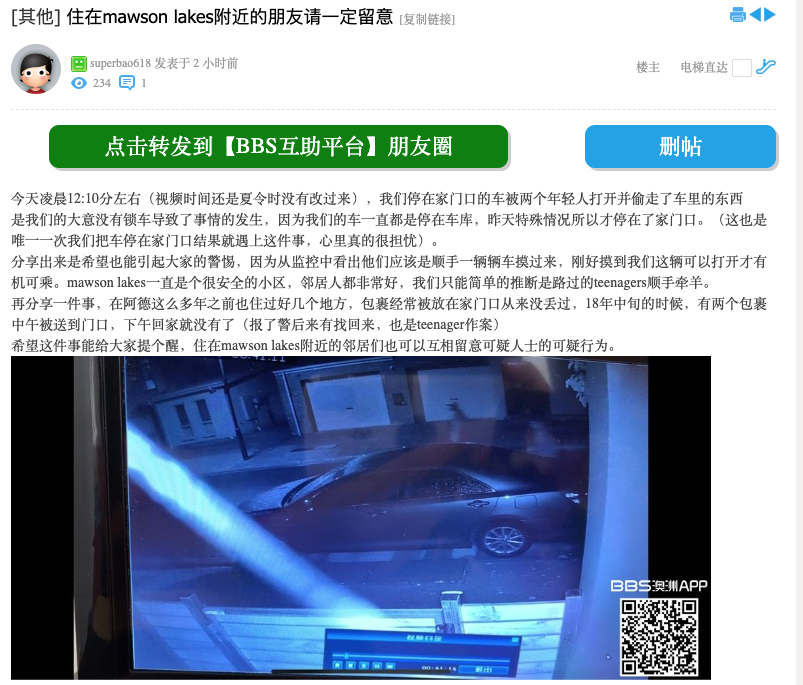 很多人觉得,车停在家门口就很安全,锁不锁都无所谓。 可是,这位阿德莱德华人的惨痛经历却给广大车主提了一个醒:就算停在家门口也不能掉以轻心! 咱们阿德莱德治安虽然不错,但各位车主们心也不要太大啊 ...