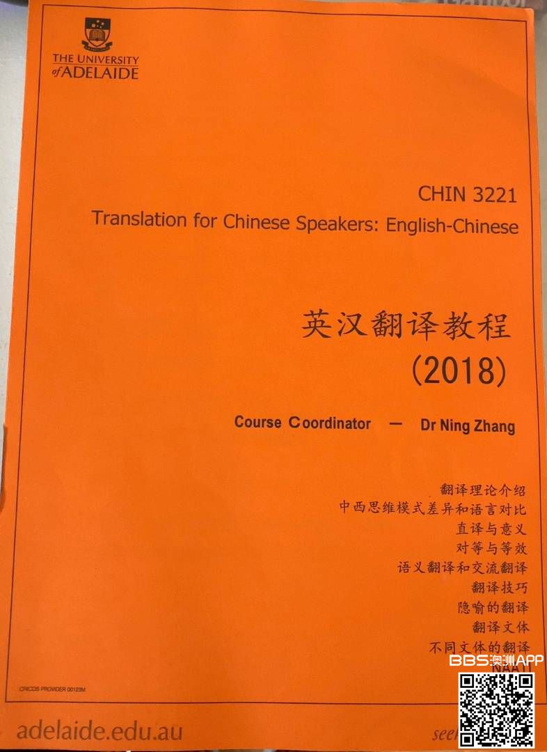 CHIN 3221 选修英翻中翻译课本 期末复习可用(已划出重点) $10 TEL: 0426395498