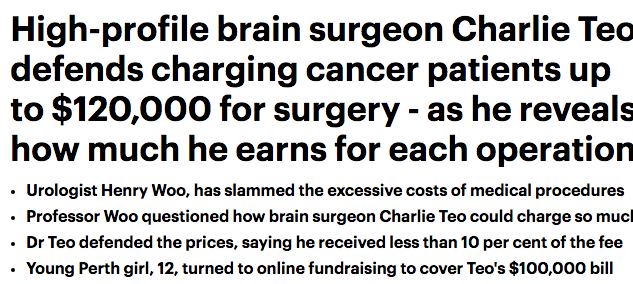 做手术不众筹都做不起!? 但是张正贤医生无法认同这一说法,他认为需要好好讨论公共及私营医疗费用的区别问题。 并表示:“很多人以为12万澳元都归我,事实并非如此,多数费用是交给私立医院,其余则是分 ...