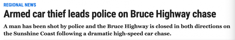突发!昆州一男子多次劫车,打伤孕妇! 在高速上被警方追击! 警方在阳光海岸的Bruce Highway上最终拦截下该男子,并枪击该男子。 该男子已被警方押送到医院,被劫车的孕妇受伤情况未知。 目前,Bruce H ...