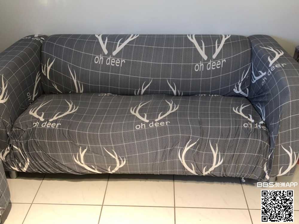 如图 出售两套布艺沙发 质量好,底色是白色,外面灰色的是沙发套,一张能坐3人 尺寸180 x 85 cm 售$70一张,两张拿走$120,有意请联系0430212666
