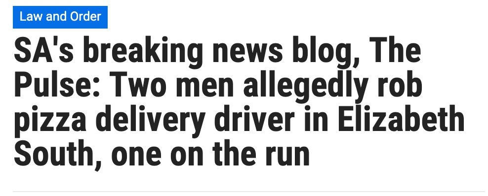 心酸!阿德莱德外卖小哥被抢,披萨现金被抢光! 据报道,在昨晚9.40左右,两名手持棒球棍和刀的男子在Elizabeth South的Hill St抢劫了一名披萨送货司机。 他被拒绝保释,并将在今天晚些时候在伊丽莎白地方法 ...