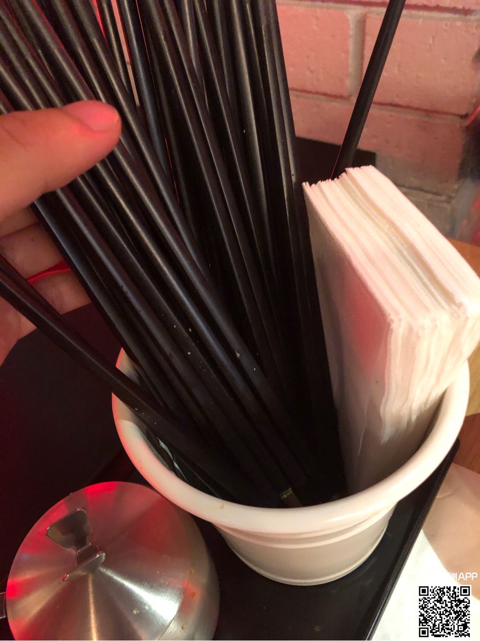 十八街 11.14日 晚上十点半 吃饭吃到一半店员过来放筷子 来康康他们筷子洗的怎么样嗷 图片看不清是啥 我看着像花生酱啥的 反正这筷子洗的可以 我要是老板看见这绝对第二天结工资赶走hhhh