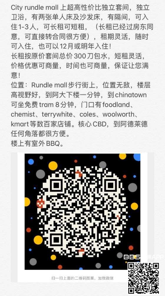 City Rundle mall上超高性价比独立套间公寓,独立卫浴,有两张单人床及沙发床,有隔间,可入住1-3人(欢迎一家人入住),可长租或短租,长租已经过房东同意,可直接转合同很方便),租期灵活,随时可入住,也可以12 ...